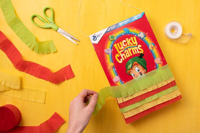 Gather your family and transform a Lucky Charms cereal box into a festive piñata that’s a joy to put together — and just as much fun to destroy!