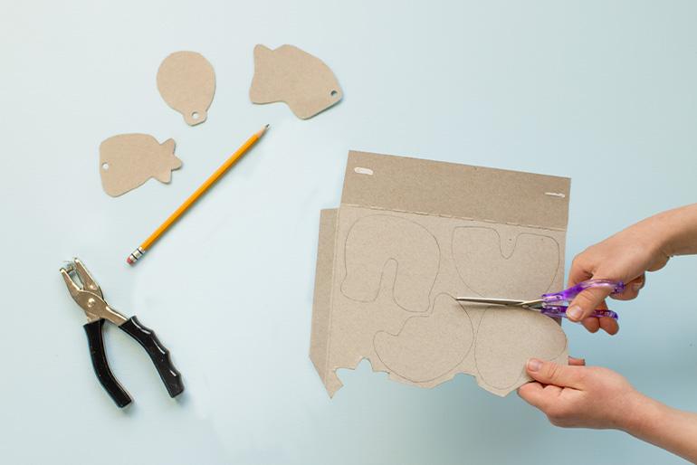 - Cut the tags out of the cardboard and punch holes in the corners.